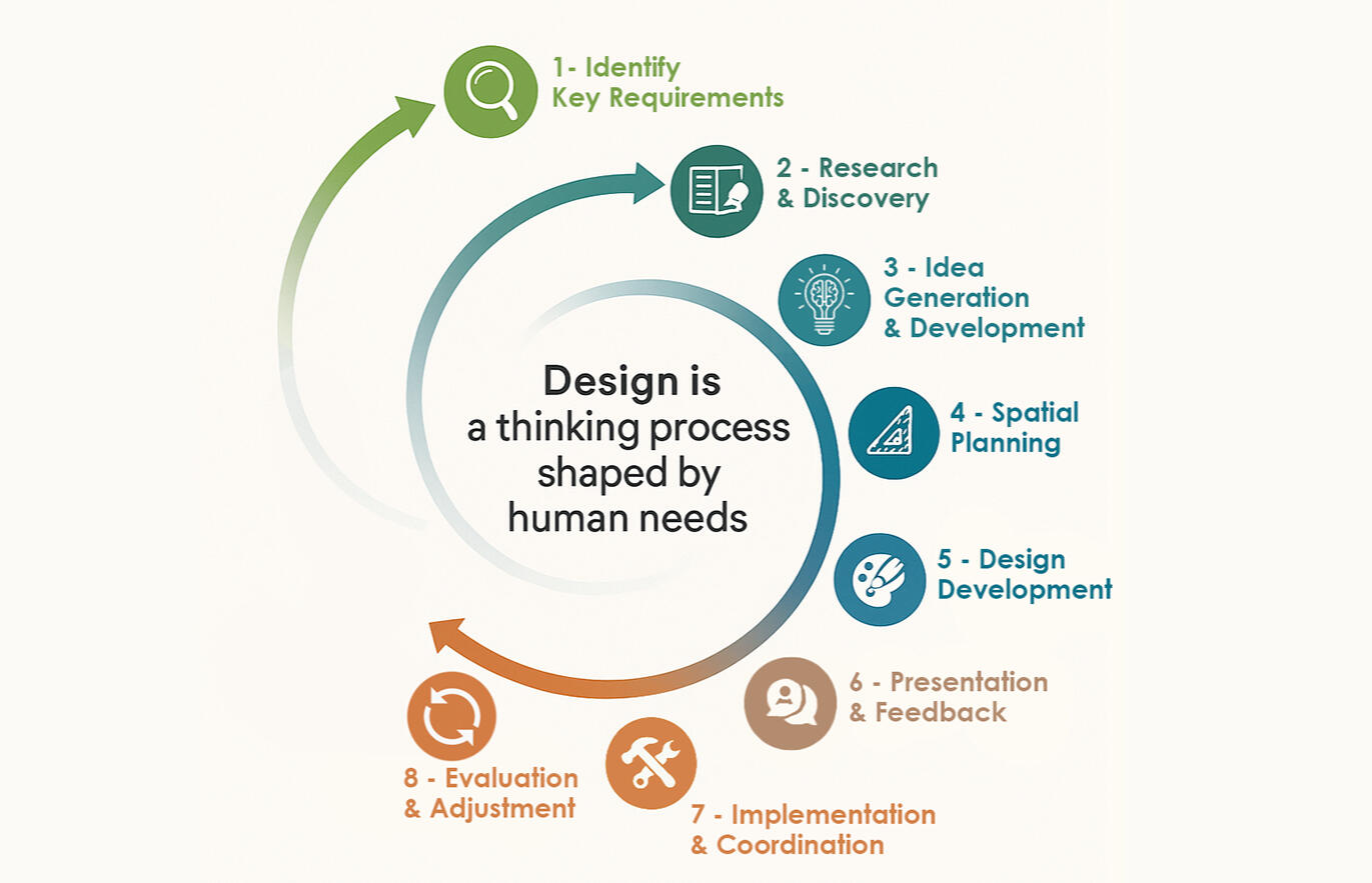 Interior design is often valued for how it looks, and while appearance is important, we believe its true essence lies in people, their emotions, behaviors, and needs. By combining creative design with psychological insight, we create interiors that move beyond aesthetics to inspire, support well-being, and deliver lasting impact.